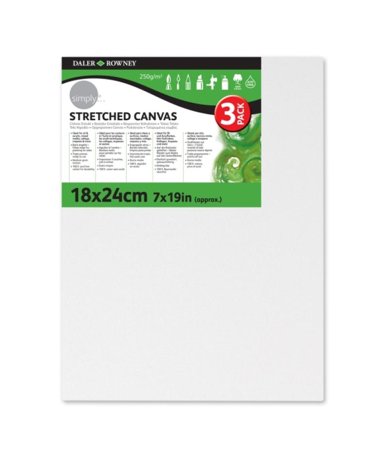 Daler Rowney Simply Pack de 3 Bastidores Entelados- 18x24cm - Imprimacion Triple - Grano Medio - 100% Algodon sin Acido - 250g -