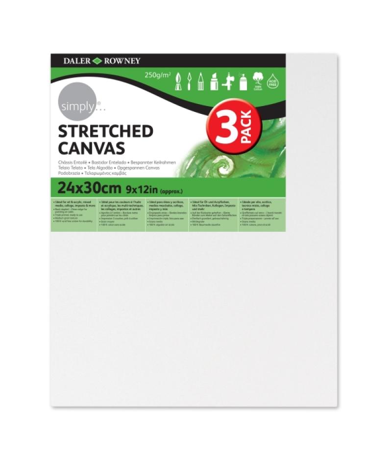 Daler Rowney Simply Pack de 3 Bastidores Entelados- 24x30cm - Imprimacion Triple - Grano Medio - 100% Algodon sin Acido - 250g -
