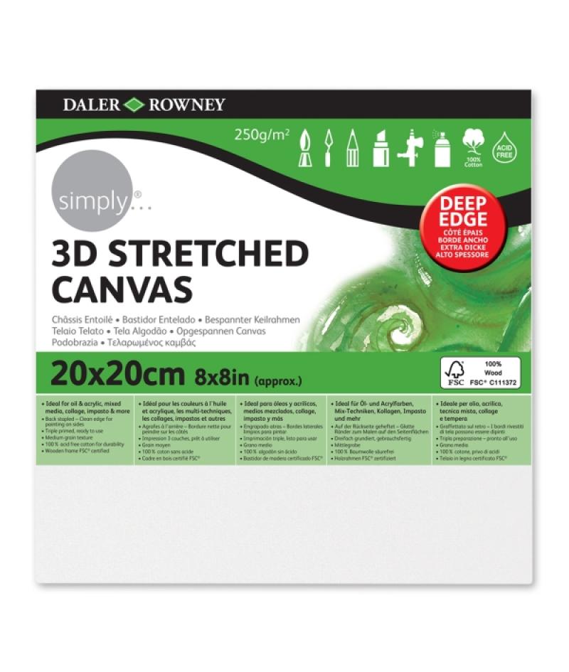 Daler Rowney Simply Bastidor Entelado 3D - 20x20cm - Imprimacion Triple - Grano Medio - 100% Algodon sin Acido - 250g - Color Bl