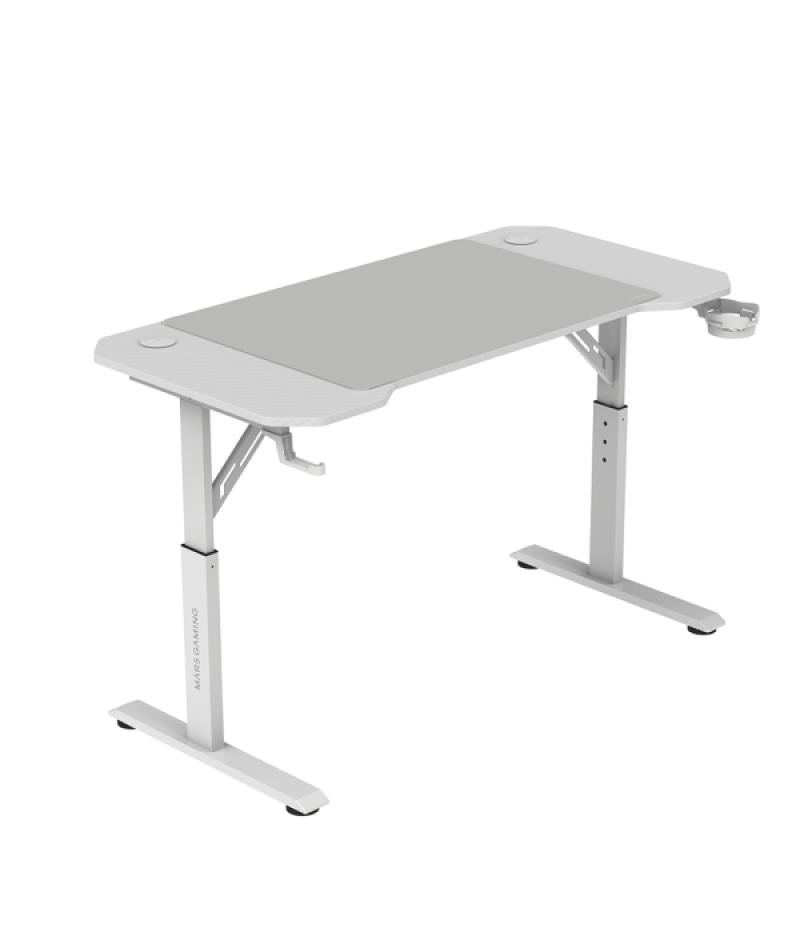 Informática - Gaming / Consolas - Mesas Gaming 406008 - Mars Gaming MGD-ERGO140 Mesa Gaming - Altura Ajustable con 3 Posiciones - Soportes Auriculares y Bebidas - Alfombrilla XXL - Estructura Acero - 140x60x1.5cm - Acabado en Fibra de Carbono - Color Blanco