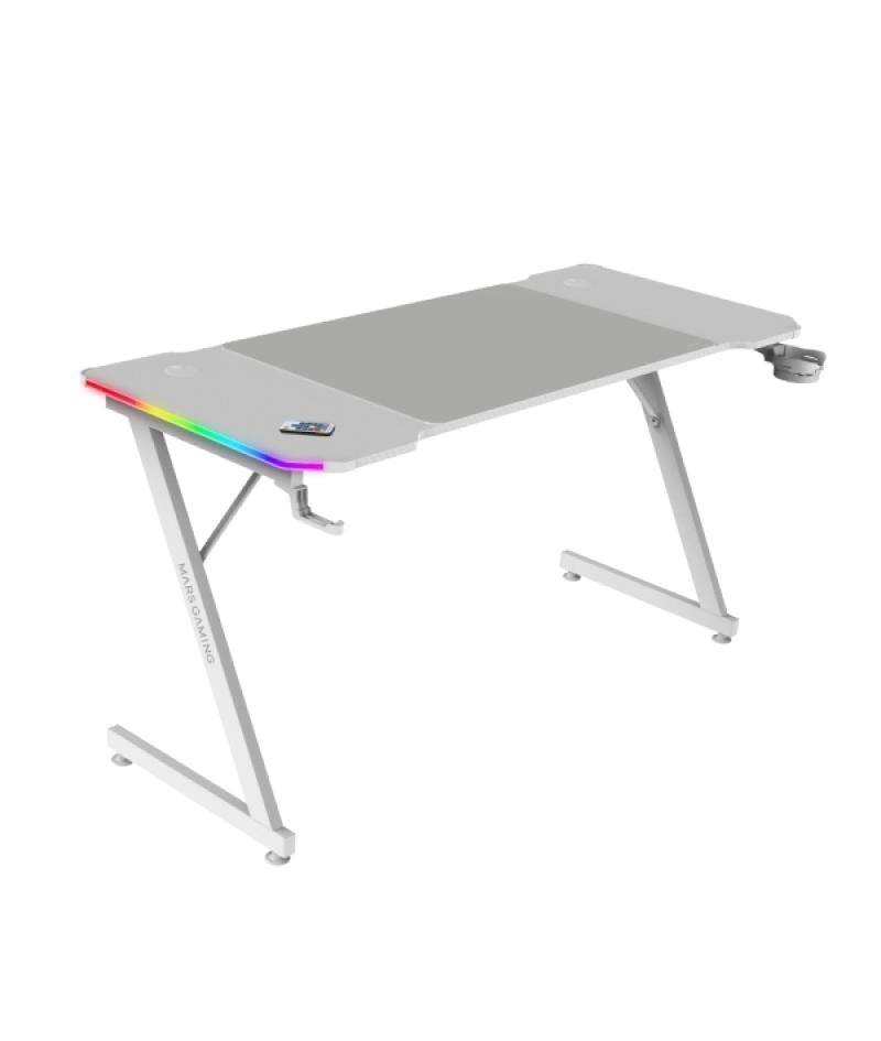 Informática - Gaming / Consolas - Mesas Gaming 295732 - Mars Gaming MGDW Mesa Gaming - Estabilidad Imbatible - Acero y Fibra de Carbono - Gestion de Cableado - Soportes para Auriculares y Bebidas - Color Blanco