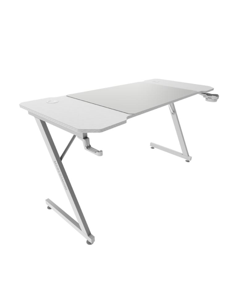 Informática - Gaming / Consolas - Mesas Gaming 295732 - Mars Gaming MGDW Mesa Gaming - Estabilidad Imbatible - Acero y Fibra de Carbono - Gestion de Cableado - Soportes para Auriculares y Bebidas - Color Blanco