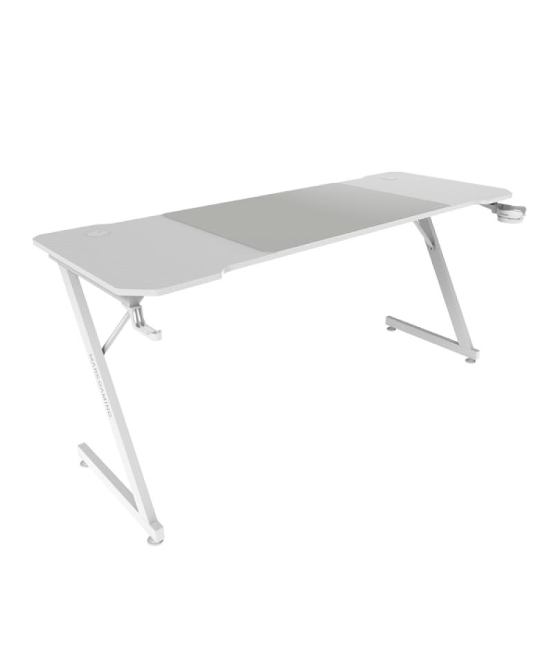 Informática - Gaming / Consolas - Mesas Gaming 406093 - Mars Gaming MGD-X140 Mesa Gaming - Soportes Auriculares y Bebidas - Alfombrilla XXL - Estructura Acero - 140x60x1.5cm - Acabado en Fibra de Carbono - Color Blanco