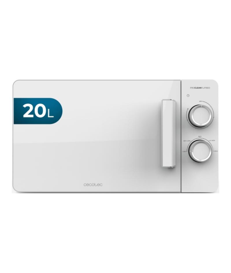 Hogar / Electrodomésticos - Cocina - Microondas 414983 - Cecotec Proclean 3020 Flatbed Microondas sin Plato - Potencia de 700W - Capacidad 20L - Revestimiento Ceramico - Temporizador 30min - Tecnologia 3Dwave Envolvente - Elegante - Color BlancoBeneficiario :