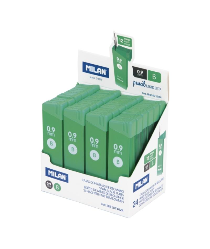 Milan Expositor con 24 Cajas de 12 Minas Grafito 0.9mm - Dureza B - Color Gris Oscuro