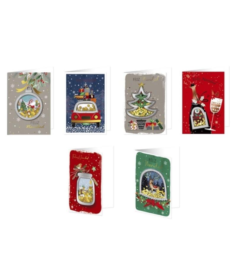 Papelería / Material de oficina - Productos de papel - Tarjetas de Felicitación - Navidad 408158 - Bismark Tarjeta de Felicitacion Navideña con Sobre - Decorada con Confetti - 6 Diseños DiferentesBeneficiario :
