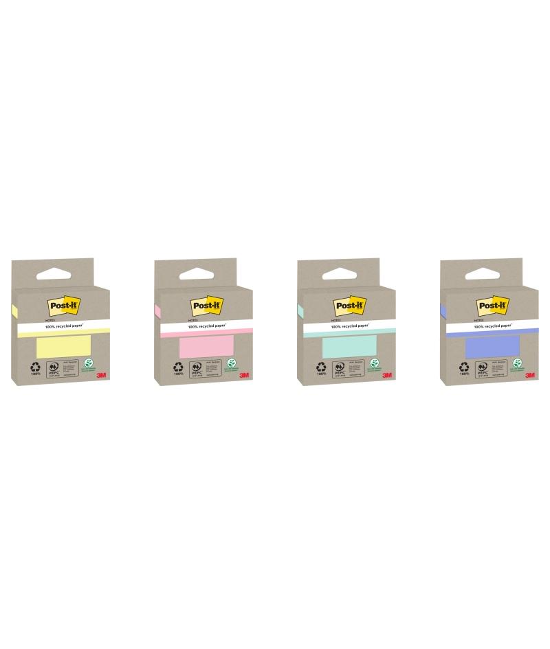Post-It Bloc de 100 Notas Adhesivas Recicladas - Forma Cuadrada - Colores Surtidos Aleatorios
