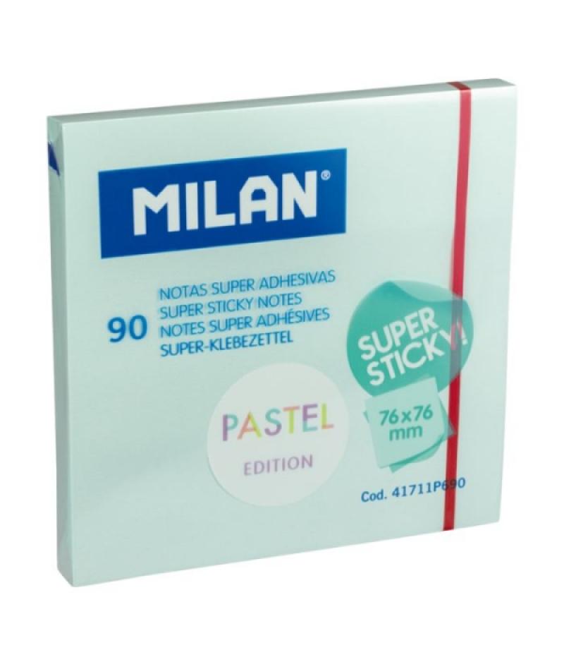Milan Bloc de 90 Notas Super Adhesivas - Removibles - Mayor Permanencia - 76mm x 76mm - Color Azul Pastel