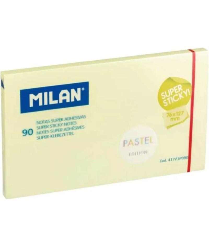 Milan Bloc de 90 Notas Super Adhesivas - Removibles - Mayor Permanencia - 76mm x 127mm - Color Amarillo Pastel