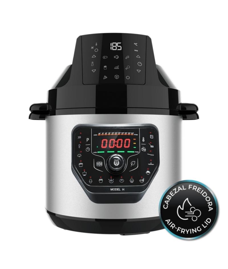Hogar / Electrodomésticos - Cocina - Ollas Eléctricas 412323 - Cecotech Fry Olla GM Programable con Cabezal Freidora sin Aceite - Cocina Multifuncion 27 Modos - Capacidad 6L - Programacion 24h - Control por Voz - Seguridad Avanzada - Color NegroBeneficiario :