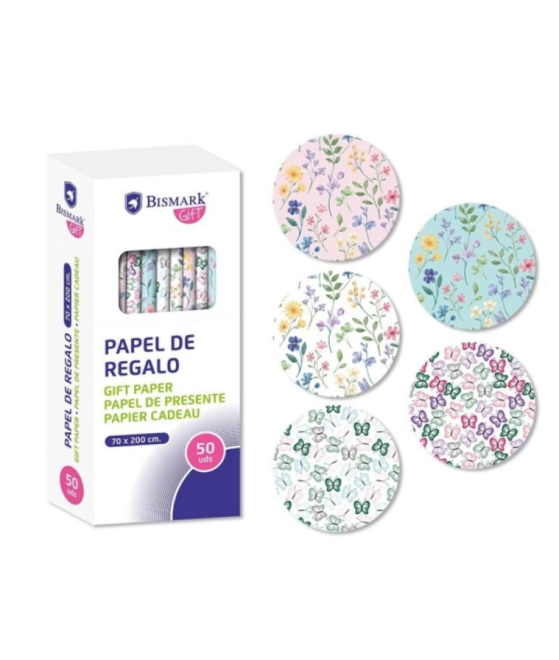 Bismark Naturaleza Rollo de Papel Regalo - Medidas 70cmx200cm - 5 Diseños Diferentes - 10 Rollos por Diseño