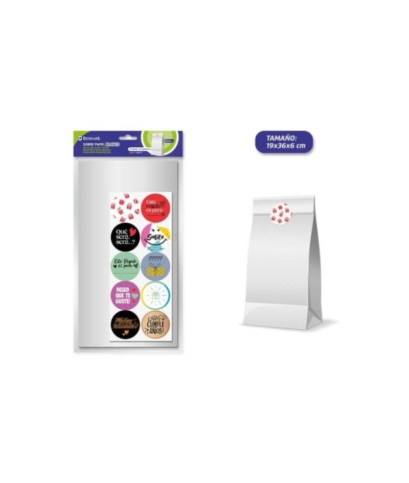 Papelería / Material de oficina - Productos de papel - Papel de Regalo 403328 - Bismark Pack de 10 Sobres Papel Kraft 50grs con 10 Pegatinas para Cierre - Medidas 19x36x6cm - Ideal para Regalos - Color BlancoBeneficiario :