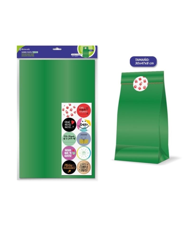 Papelería / Material de oficina - Productos de papel - Papel de Regalo 403363 - Bismark Pack de 10 Sobres Papel Kraft 50grs con 10 Pegatinas para Cierre - Medidas 30x47x8cm - Ideal para Regalos - Color VerdeBeneficiario :