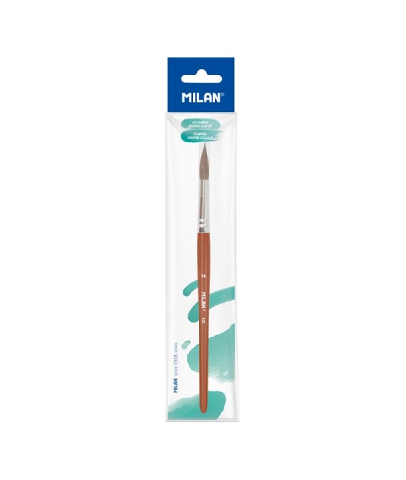 Milan 101 Pincel Escolar Redondo Numero 14 - Bolsa con Colgador - Pelo de Cabra y Sintetico - Color Madera Oscuro