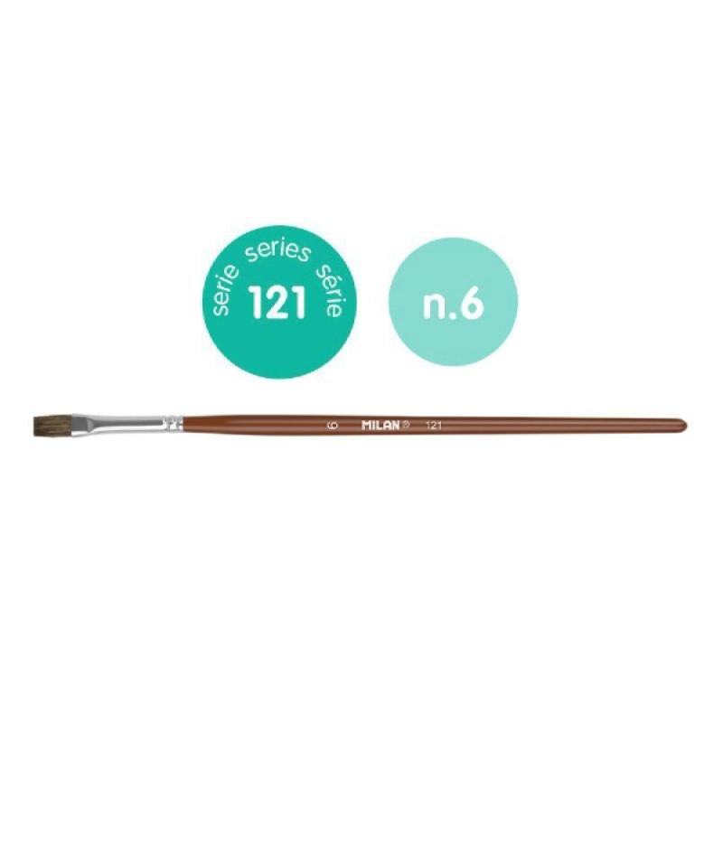 Papelería / Material de oficina - Dibujar, pintar y colorear - Pinceles 400453 - Milan 121 Pack de 12 Pinceles Escolares Planos Numero 6 - Bolsa con Colgador - Pelo de Cabra y Sintetico - Color Madera OscuroBeneficiario :