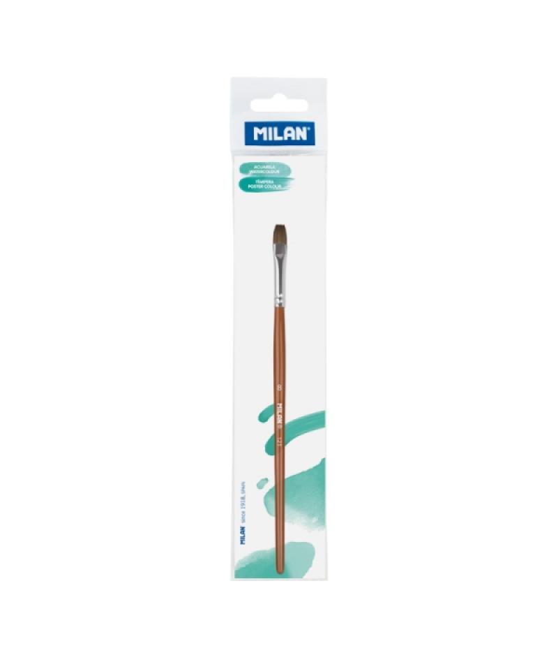 Milan 121 Pincel Escolar Plano Numero 8 - Bolsa con Colgador - Pelo de Cabra y Sintetico - Color Madera Oscuro