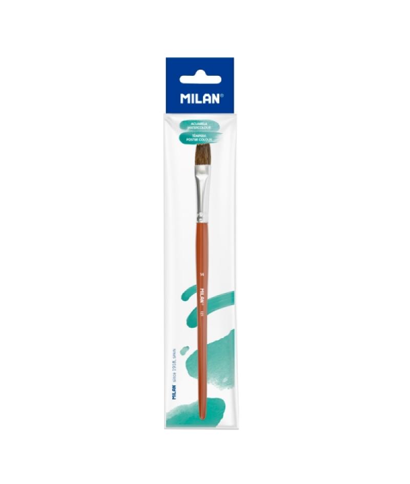Milan 121 Pincel Escolar Plano Numero 14 - Bolsa con Colgador - Pelo de Cabra y Sintetico - Color Madera Oscuro