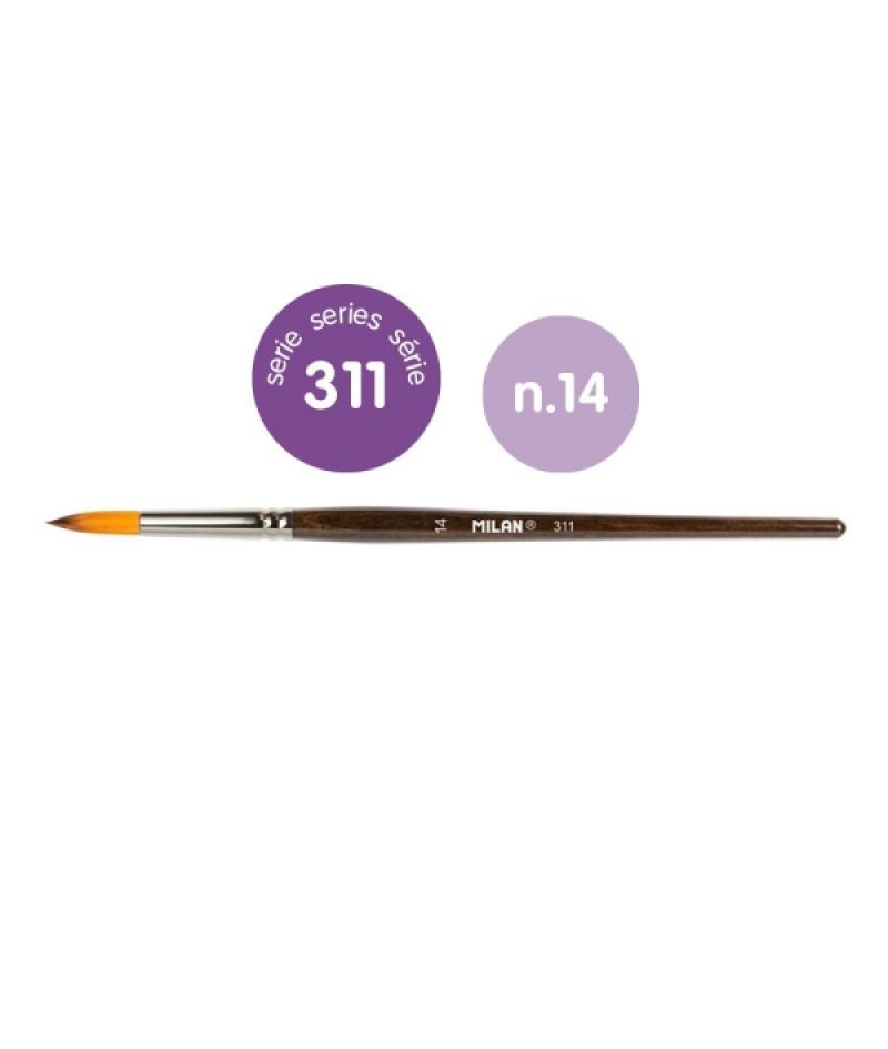 Milan 311 Pack de 6 Pinceles Redondos Numero 14 - Bolsa con Colgador - Pelo Sintetico - Color Madera Oscuro