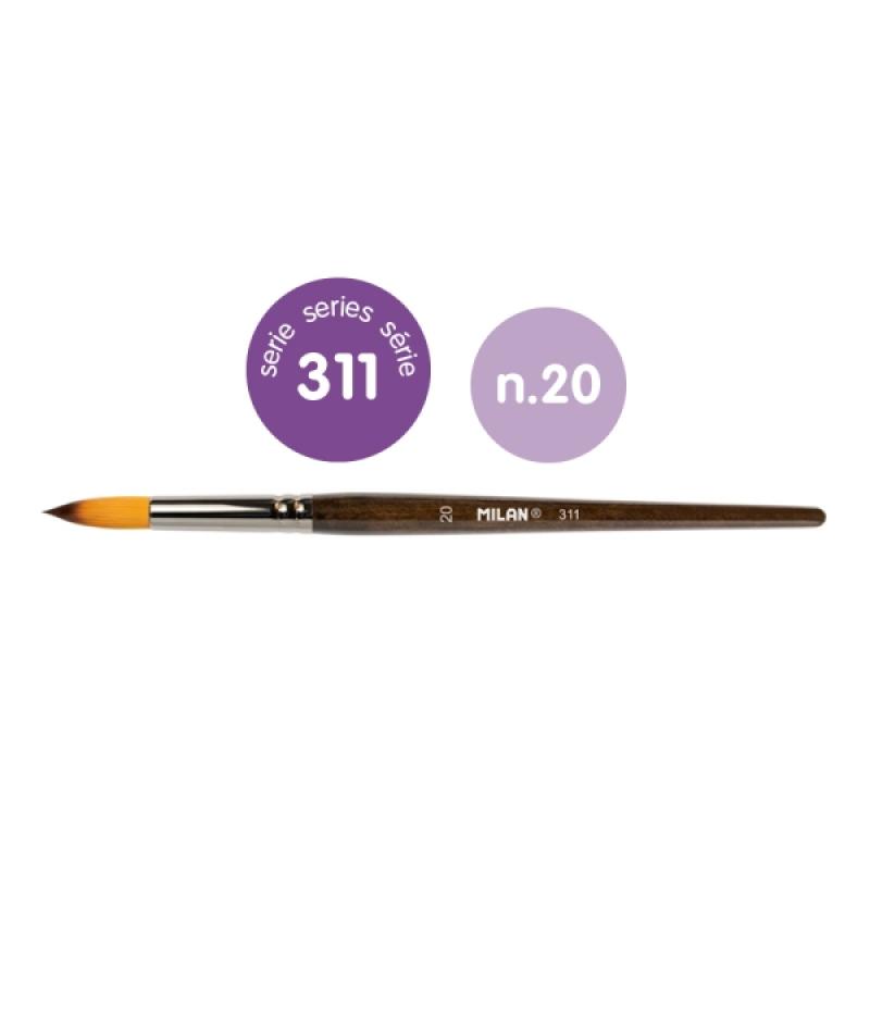 Milan 311 Pack de 3 Pinceles Redondos Numero 20 - Bolsa con Colgador - Pelo Sintetico - Color Madera Oscuro