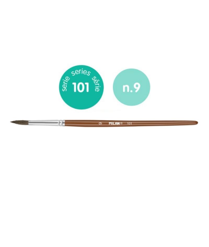 Papelería / Material de oficina - Dibujar, pintar y colorear - Pinceles 400433 - Milan 101 Pack de 6 Pinceles Escolares Redondos Numero 9 - Bolsa con Colgador - Pelo de Cabra y Sintetico - Color Madera OscuroBeneficiario :