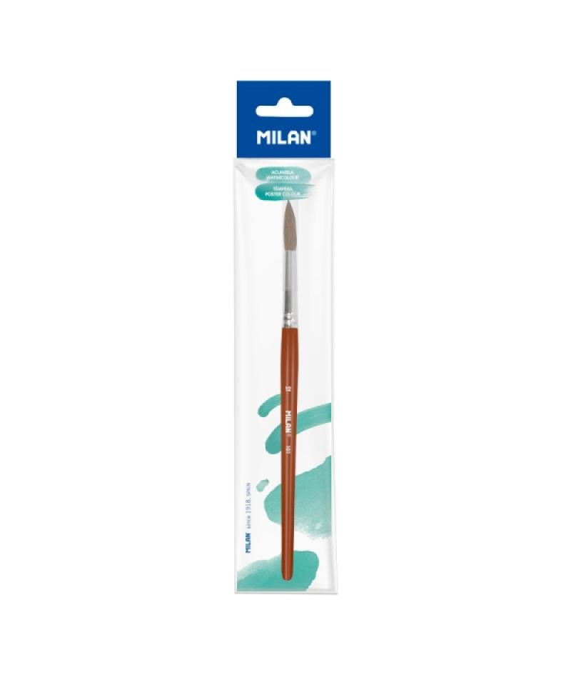 Papelería / Material de oficina - Dibujar, pintar y colorear - Pinceles 400033 - Milan 101 Pincel Escolar Redondo Numero 12 - Bolsa con Colgador - Pelo de Cabra y Sintetico - Color Madera OscuroBeneficiario :