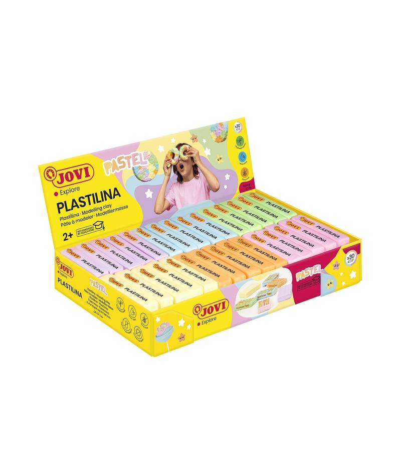 Jovi Expositor de 30 Pastillas de Plastilina 50gr - 100% Vegetal - Muy Moldeable - No Se Seca - Mezclables - Colores Pastel Surt