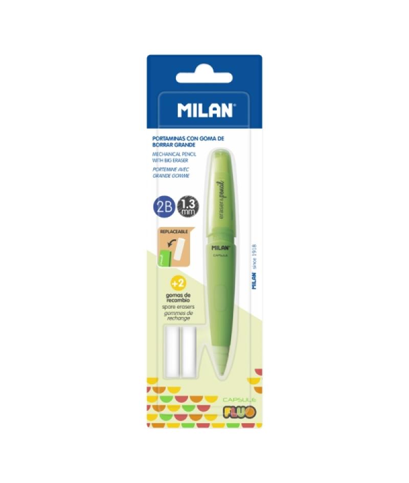 Milan Capsule Fluo Portaminas 1.3mm - Incluye 2 Gomas de Recambio - Colores Surtidos
