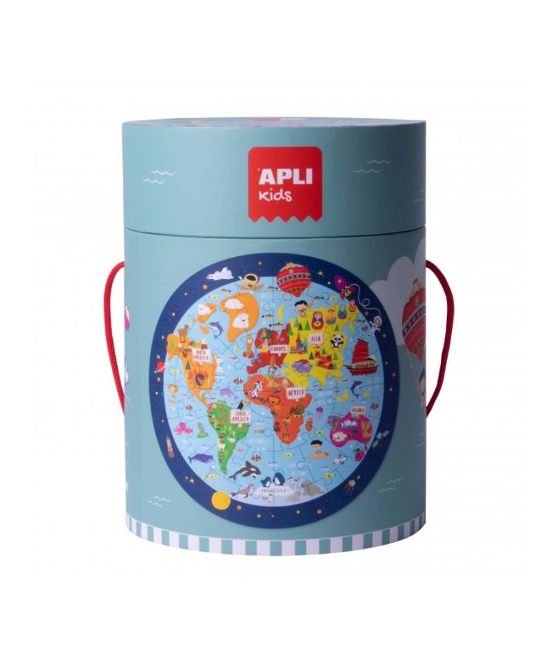 Apli Puzzle Circular del Mapamundi de 48 Piezas - Tamaño Ø50cm - Poster para Facilitar Montaje - Recomendado para Niños a partir