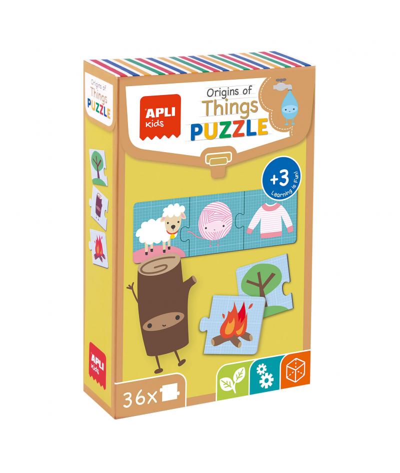 Apli Puzle Origen de las Cosas - 36 Piezas de 7x7mm - Carton Resistente y Brillante - Desarrolla Habilidades y Capacidades - Ide