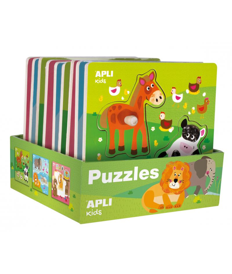 Apli Expositor de Puzles de Madera Encajables Tematica Infantil Animales - 20x20 cm - 9 Puzles con Guia Impresa - Alto Valor Did