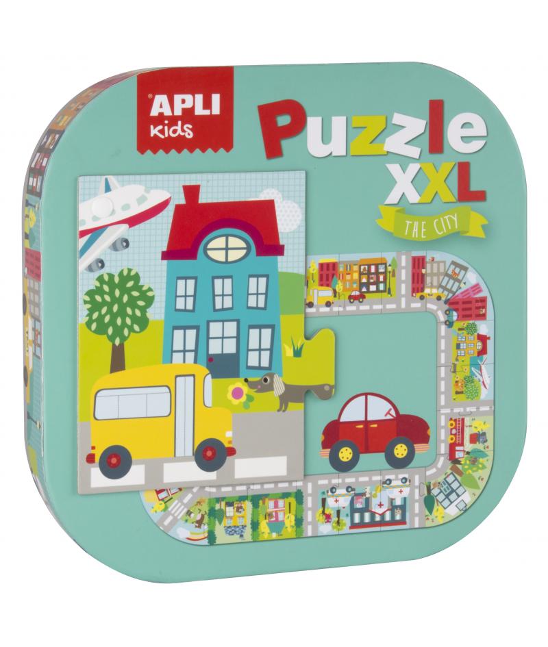 Apli Puzle xxl Ciudad - 20 Piezas de 14.5cm - Circuito Cerrado con Ilustraciones - Doble Diversion - Carton 2mm Brillante - Desa