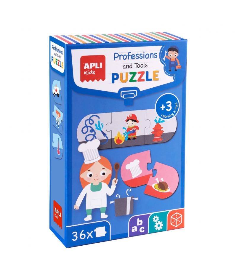 Apli Puzle Profesiones y Herramientas - 36 Piezas de 7x7 cm - Carton de 2mm con Acabado Brillante - Desarrolla Habilidades y Cap