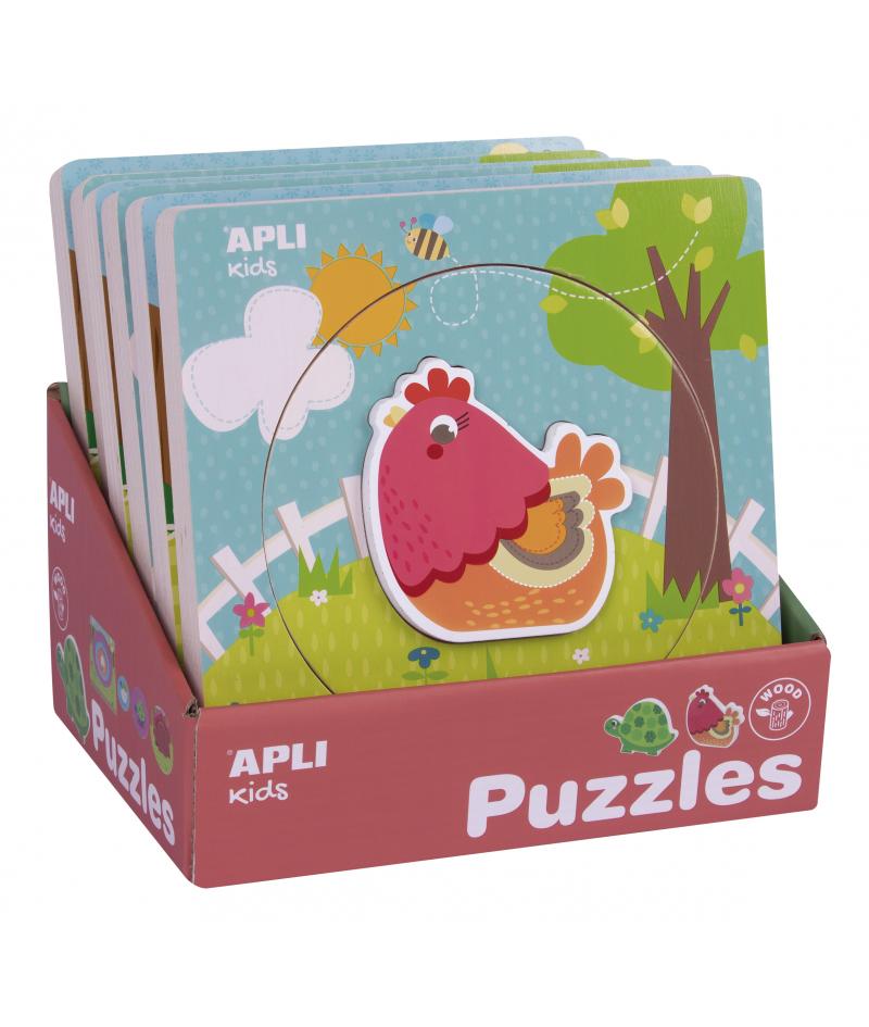 Apli Expositor de Puzles de Madera Encajables - 198x198x18 mm - 6 Puzles con Ciclo de Vida y Animal - Guia Impresa - Alto Valor