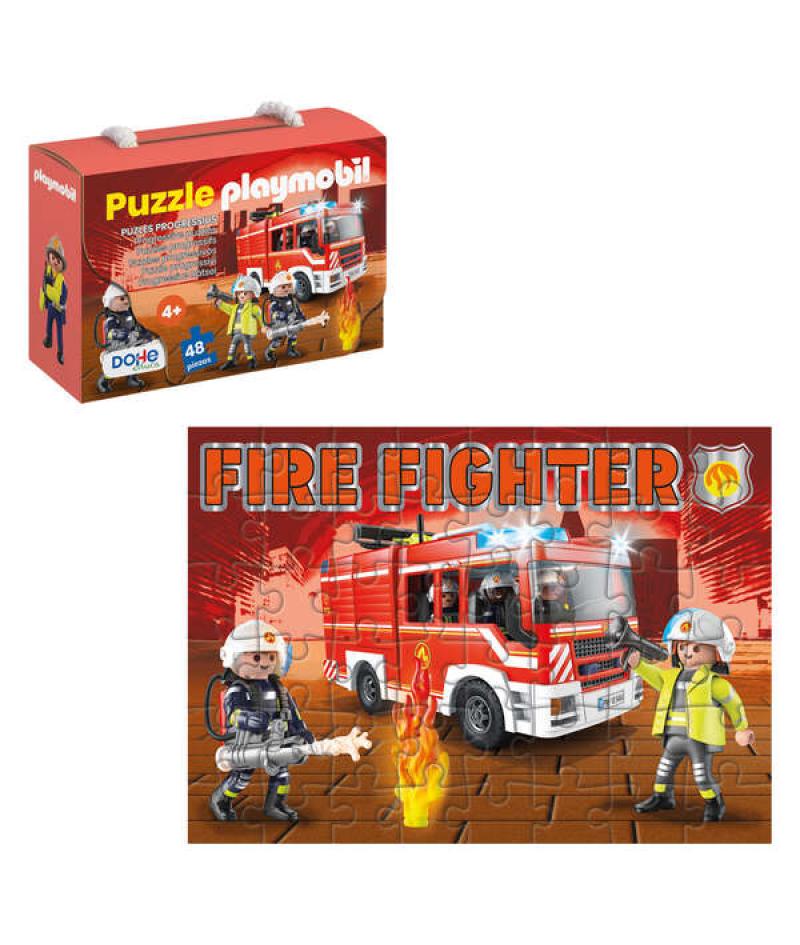 Dohe Playmobil Puzzle para Niños de 48 Piezas - Tematica Bomberos - Doble Capa de Carton - Capa Intermedia de Contrachapado - Es