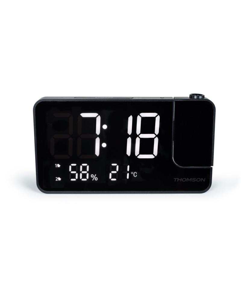 Thomson CP100T Radio Reloj Despertador - Proyeccion y Temperatura Interior - Alarma Dual - Color Negro