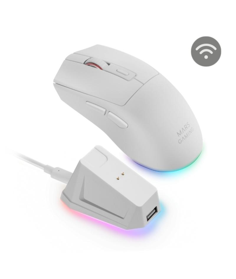 Informática - Periféricos - Ratones 406703 - Mars Gaming MM-T3 Raton Inalambrico Ultraligero - 14400dpi - Bluetooth 5.0 - Rf 2.4Ghz - Switches HUANO - Base con Luces RGB - 7 Botones Configurables - 118x64x40mm - Color BlancoBeneficiario :