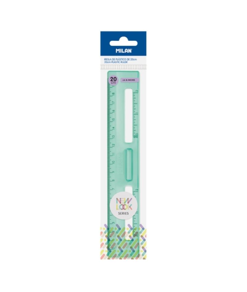 Milan New Look Regla de 20cm - Plastico Rigido - Transparente - Centimetros y Pulgadas - Color Verde