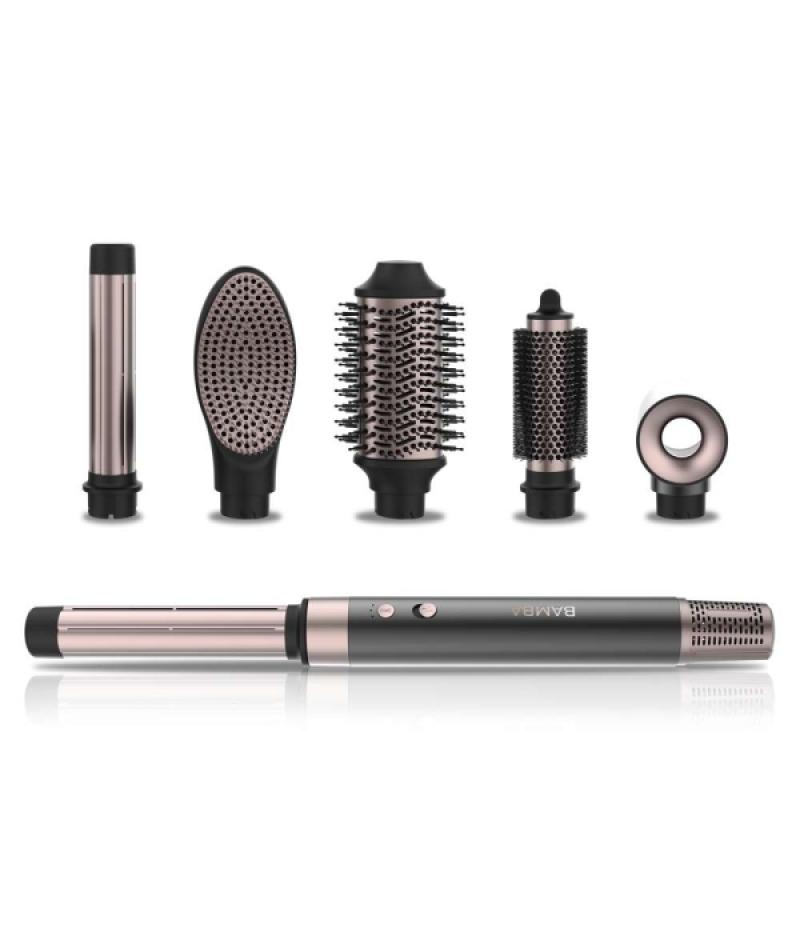 Moldeador multifunción con tecnología Coanda, que enrolla suavemente el cabello sobre su superficie curva para crear rizos definidos al instante. Ideal para todo tipo de peinados, incluye 6 cabezales intercambiables con revestimiento cerámico, que cuidan el cabello y distribuyen el calor de forma uniforme. Permite moldear el cabello con estilo francés, definir flequillos, alisar con acabado profesional, dar volumen con su cabezal ovalado y secar con rapidez gracias a su motor brushless de 110000 rpm. El control de temperatura con 3 niveles y 2 velocidades de aire ofrece precisión total en cada peinado. La emisión de iones negativos combate el encrespamiento y protege la cutícula, dejando el cabello más fuerte y sano. Incluye función de aire frío para fijar el peinado, cable de 1.8m para mayor comodidad y filtro extraíble para mantener el dispositivo limpio. Características: -Tecnología principal Efecto Coanda -Motor Brushless 110000 rpm -Cabezal secador Sí -Cabezal rizador 2 cilindros (derecha e izquierda) -Cepillos incluidos 32mm, 60mm, alisador, ovalado -Número de cabezales 6 -Revestimiento Cerámica -Control de temperatura 3 niveles -Velocidades de aire 2 -Función de aire frío Sí -Tecnología iónica Sí, con emisión de iones negativos -Longitud del cable 1.8 m -Filtro Extraíble -Usos recomendados Rizar, alisar, dar volumen, secar, moldear flequillo -Estilo de peinado Peinado Bob, alisado profesional, ondas definidas -Aplicaciones Peinados rápidos, cuidado capilar, reducción de frizz Contenido: -Manual de instrucciones -Producto -Cepillo alisador -Cepillo de 32 mm -Cepillo de 60 mm -Cilindro rizador derecha -Cilindro rizador izquierda -Concentrador COMPATIBILIDADES:
