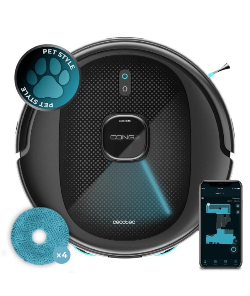 Hogar / Electrodomésticos - Limpieza del Hogar - Robots Aspiradores 411243 - Cecotec Conga 7490 Ultimate Genesis Robot Aspirador 4 en 1 - 4000Pa - Navegacion Laser - Autonomia hasta 120min - Control App - 10 Modos de Limpieza - Sensores Anticaida - Color Negro