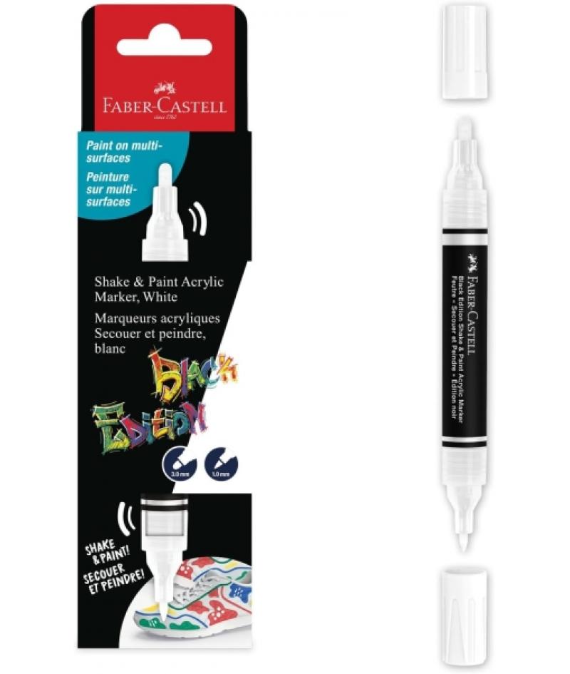 Papelería / Material de oficina - Dibujar, pintar y colorear - Rotuladores y subrayadores de colores 388618 - Faber-Castell Shake & Paint Black Edition Rotulador Acrilico Doble Punta - Puntas Redondas de 1mm y 3mm - Tinta Acrilica al Agua - Color BlancoBeneficiario :