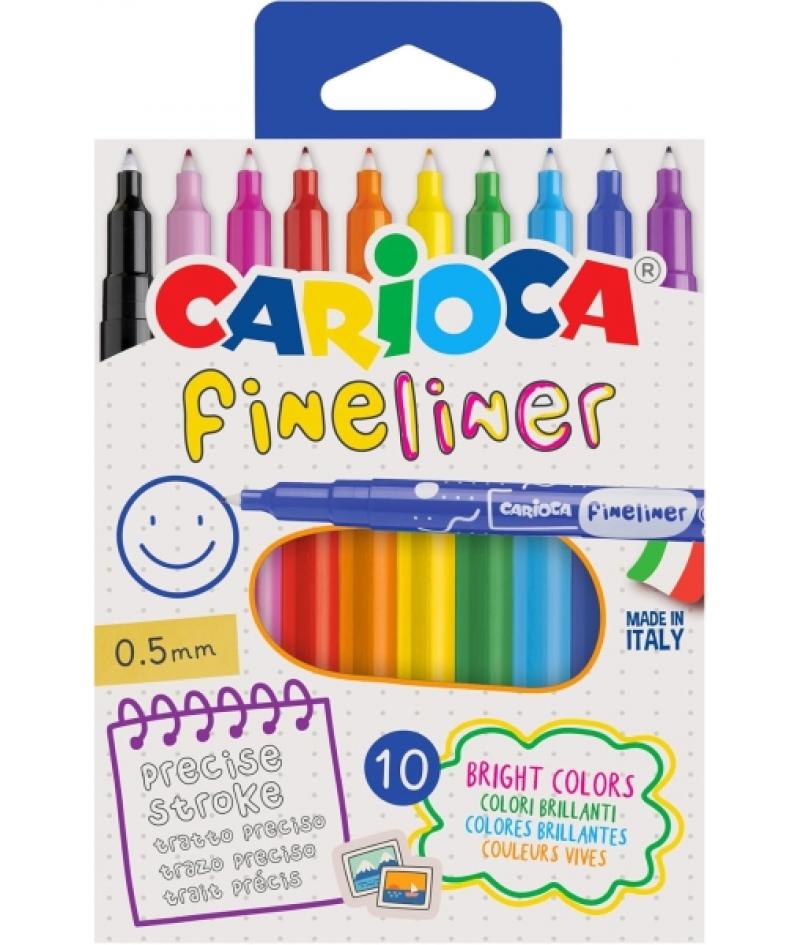 Carioca Fineliner Pack de 10 Rotuladores - Punta Blanca de Acetal 0.5mm - Colores Surtidos