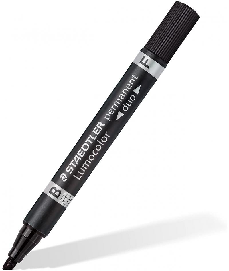 Staedtler Lumocolor 348 Rotulador Permanente de Doble Punta F de 0,6mm y M Biselada de 1,5-4mm - Secado Rapido - Color Negro