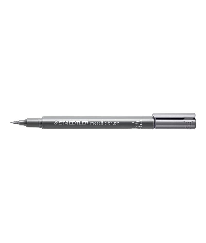 Staedtler Metallic Brush Rotulador Punta Pincel - Trazo 1 - 6mm Aprox - Tinta Base de Agua - Color Plata