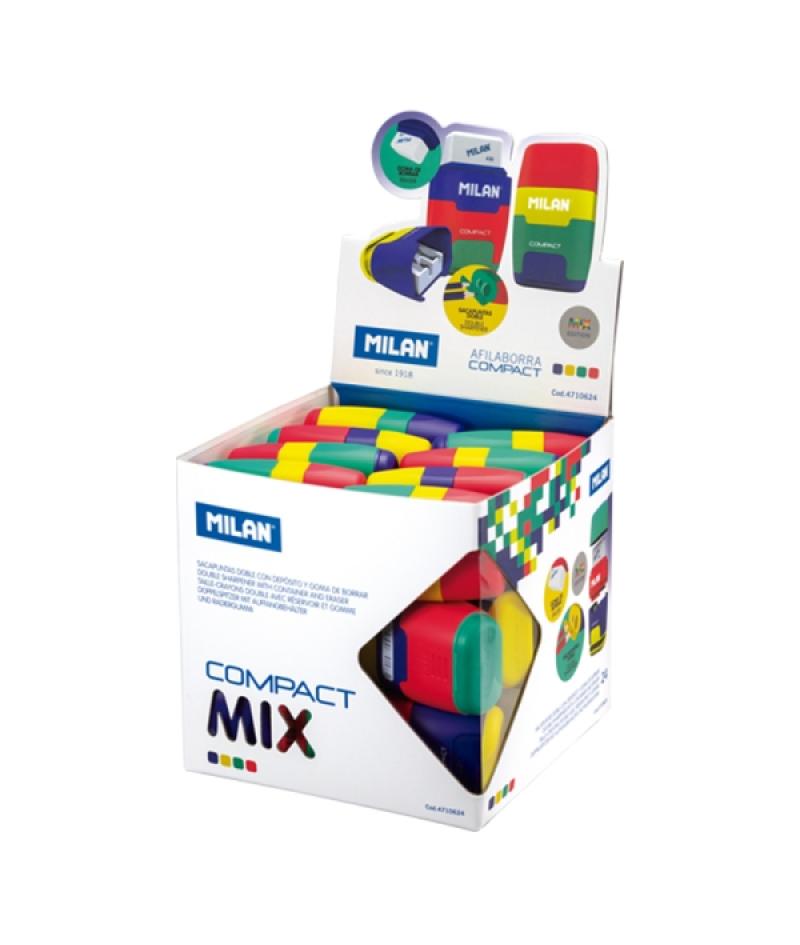 Papelería / Material de oficina - Escritura y corrección - Sacapuntas 397598 - Milan Compact Mix Expositor con 24 Afilaborras - Goma Miga de Pan - Deposito Integrado - Cuchilla de Acero de Seguridad - Colores SurtidosBeneficiario :