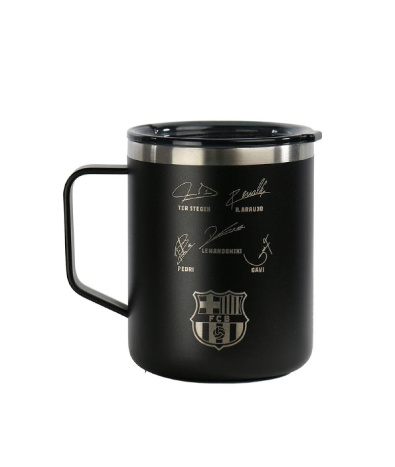 Hogar / Electrodomésticos - Cocina - Almacenamiento de cocina y despensa - Termos 389883 - Safta F.C.Barcelona Taza Acero Inoxidable 400mL - Doble Pared - Base de Silicona - Acero Inoxidable - Tapa y Asa - 12H Caliente / 24H Frio - 10.7x8.4x8.4cm - Color NegroBeneficiario :
