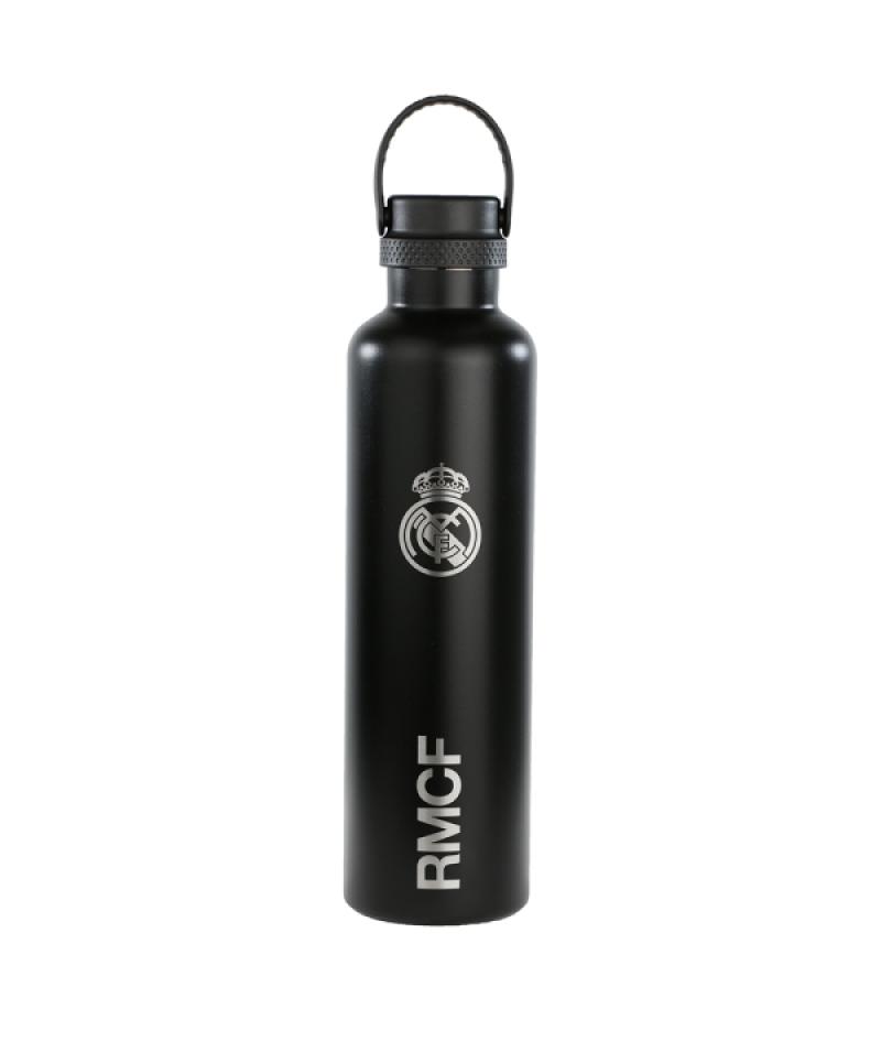 Hogar / Electrodomésticos - Cocina - Almacenamiento de cocina y despensa - Termos 389888 - Safta Real Madrid Botella Reutilizable 1L - Doble Pared - Base de Silicona - Acero Inoxidable - Tapon a Rosca con Asa - 12H Caliente / 24H Frio - 31.5x8.4x8.4cm - Color NegroBeneficiario :