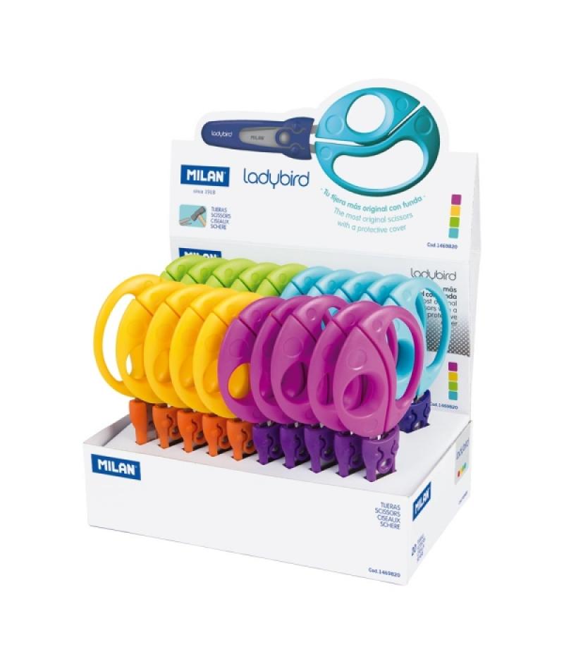 Papelería / Material de oficina - Material de oficina - Corte de papel - Tijeras 399908 - Milan Ladybird Expositor con 20 Tijeras con Funda - Mango Ergonomico - Punta Redondeada - Acero Inoxidable de 15cm - Colores SurtidosBeneficiario :