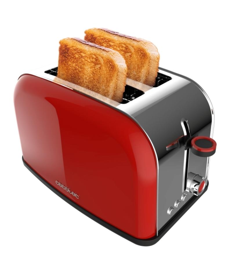 Hogar / Electrodomésticos - Cocina - Tostadoras 412778 - Cecotec Toastin' Time 850 Tostadora de Ranura Larga - 850W - Ranura Ancha - Acero Inoxidable - Apagado y Pop-Up Automatico - Autocentrado - 7 Niveles de Tostado - Color Rojo