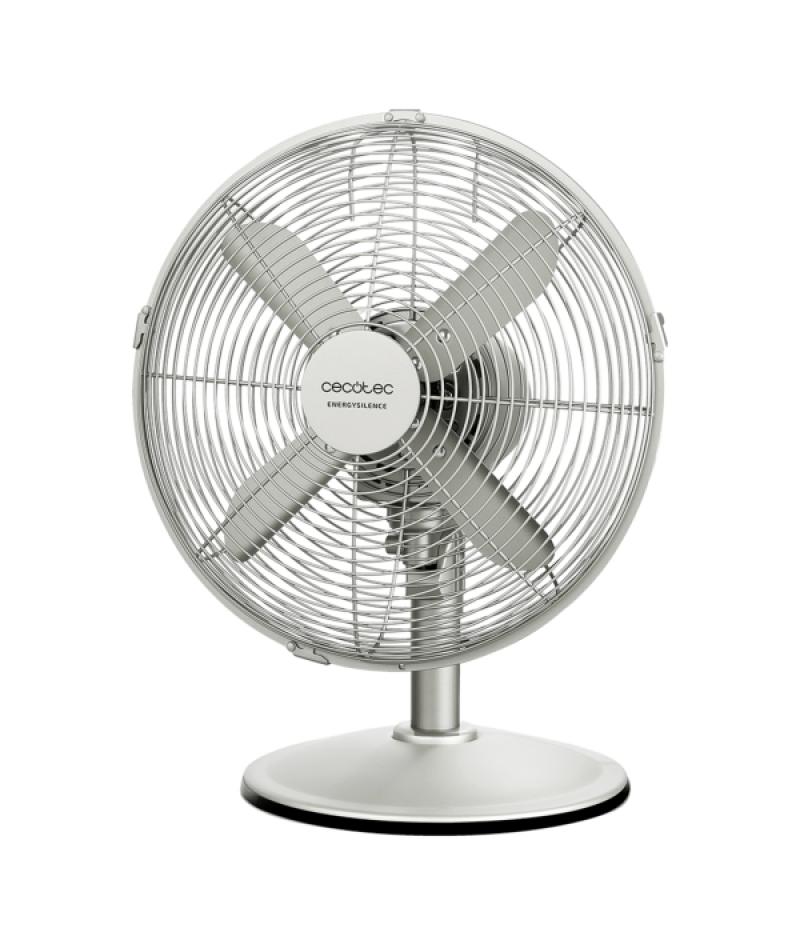 Hogar / Electrodomésticos - Calefacción y Climatización - Ventiladores - Ventiladores de sobremesa 417018 - Cecotec EnergySilence 620 RetroDesk Ventilador de Sobremesa con 4 Aspas - Potencia de 40W - Diametro 30cm - 3 Velocidades - Oscilacion Automatica - Tecnologia Silenciosa - Acabado en Acero Cromado