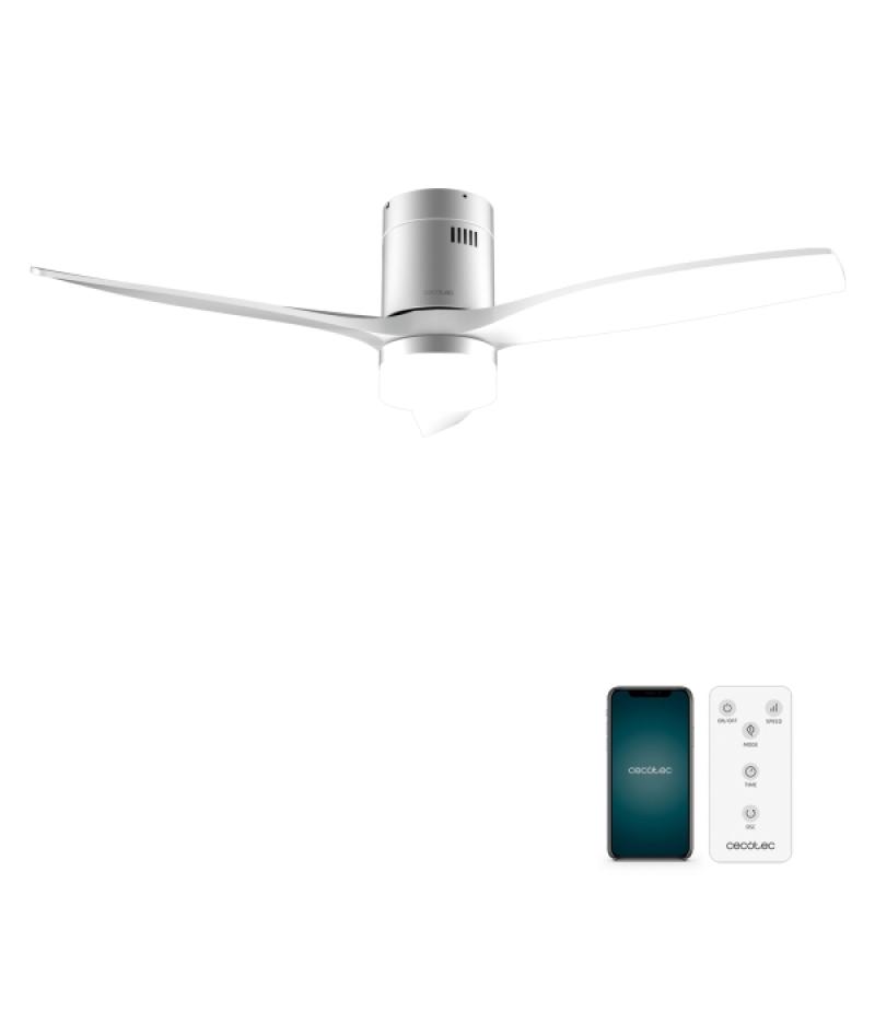 Hogar / Electrodomésticos - Calefacción y Climatización - Ventiladores - Ventiladores de techo 416633 - Cecotec EnergySilence Aero 5600 Aqua IronWhite Connected Ventilador de Techo con 3 Aspas y Luz - 40W - Diametro de 52" - LED de 20W - Wi-Fi - IP44 - Temporizador - 6 Velocidades - Color BlancoBeneficiario :